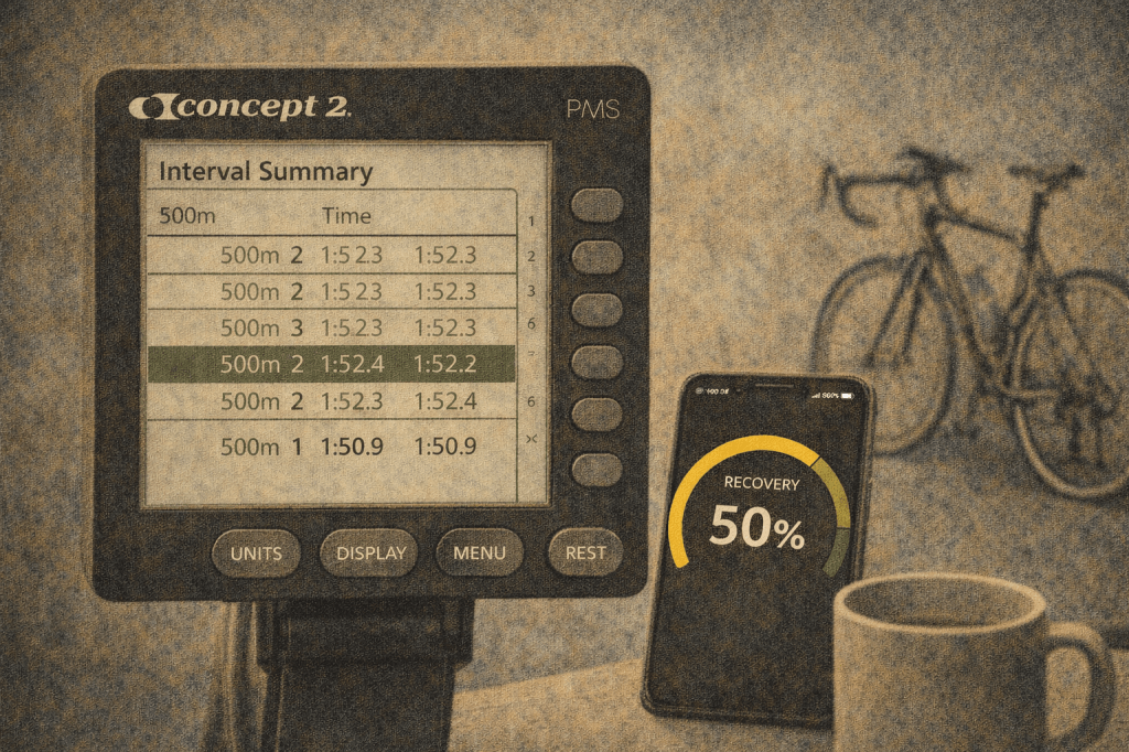 Coach GPT put 5x 500-metre intervals into the plan at a target pace of 1:52/500m and a stroke rate of 24–26. My first reaction when I saw it was: that’s a bit much.